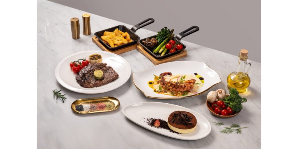 Complementary sides such as russet steak fries, sautéed spinach, sautéed mushrooms, truffled mashed potatoes, and Peruvian asparagus with broccolini are available, priced from RM15 to RM35.