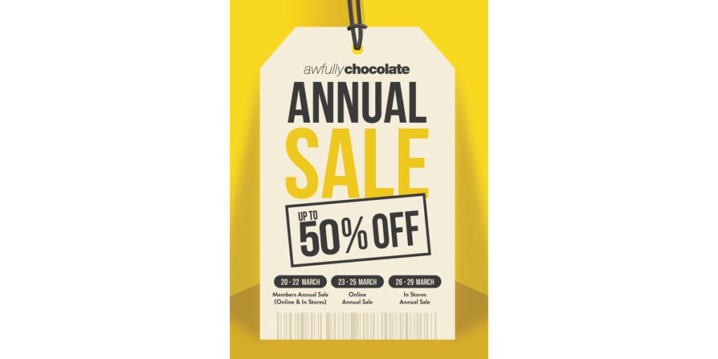 • Online Annual Sale (23 – 25 March): A dedicated digital window allows customers to shop early at awfullychocolate.com.