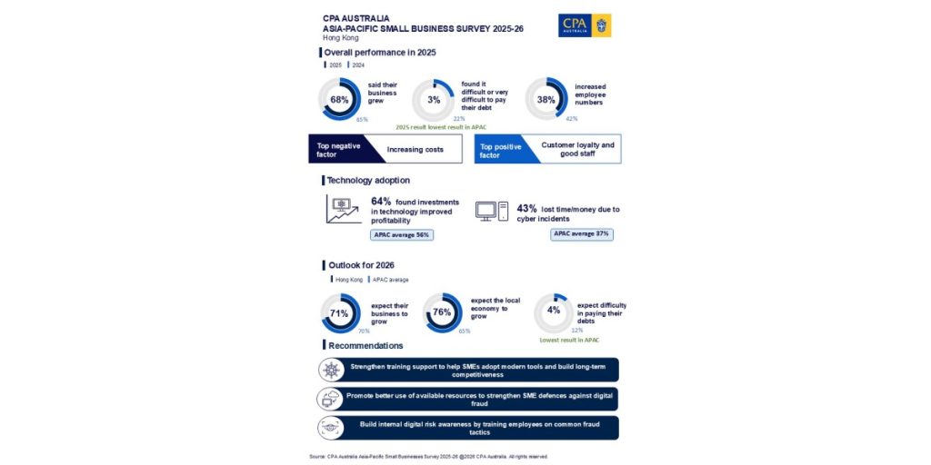 “However, rising digital fraud, wider AI adoption and SMEs’ increasing reliance on digital banking have prompted the Hong Kong Government to significantly strengthen banking security and cybersecurity resilience over the past year. This includes the rollout of low-cost and practical initiatives such as the Cybersec One Programme and the continued implementation of the ‘9+5’ SME support measures. The decline of cyberattack-related losses reported in the survey in part reflects the effectiveness of these measures.